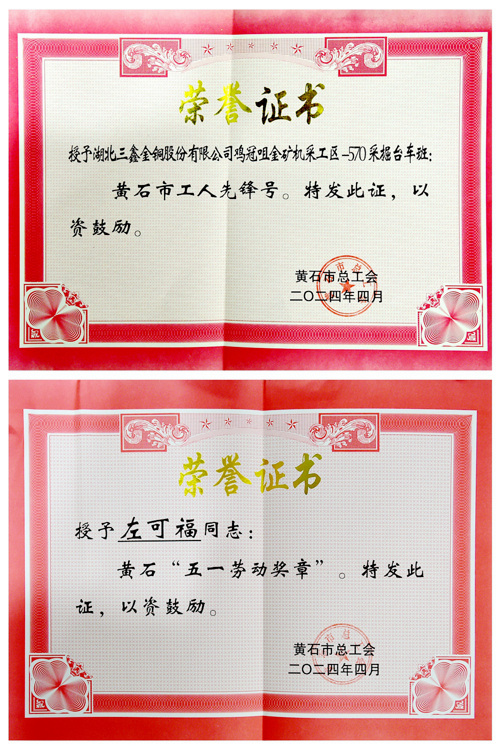 近日,黄石市总工会召开庆祝“五一”国际劳动节先进模范代表座谈会,会议通报了黄石市2024年五一劳动奖和黄石市工人先锋号评选情况。其中,湖北三鑫公司鸡冠咀金矿机采工区-570采掘台车班获“黄石市工人先锋号”,提升车间党支部书记、主任左可福获“黄石五一劳动奖章”称号。