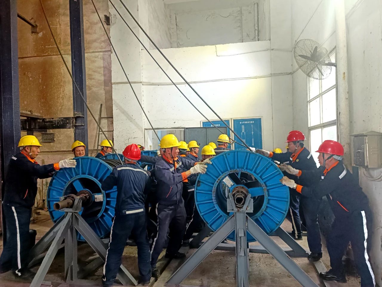 “大家加油,一股作气把最后100米盘完……”深秋的主井井塔,阵阵寒意袭来。傍晚19时许,主井大厅内,湖北三鑫公司鸡冠咀金矿作业人员正齐心将最后100米钢丝绳盘进收绳滚筒中,现场呈现出一派热火朝天的劳动景象。