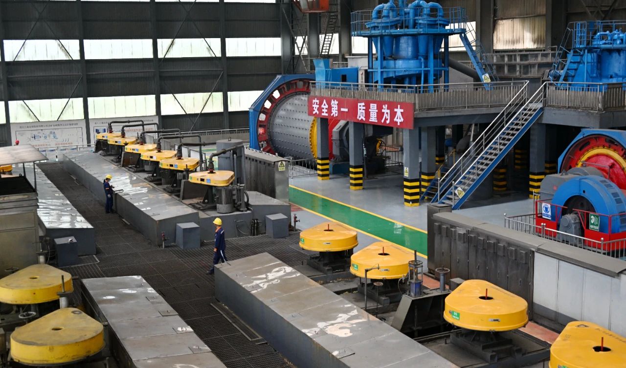 ▲选矿厂磨浮车间浮选工在巡查浮选槽泡沫情况