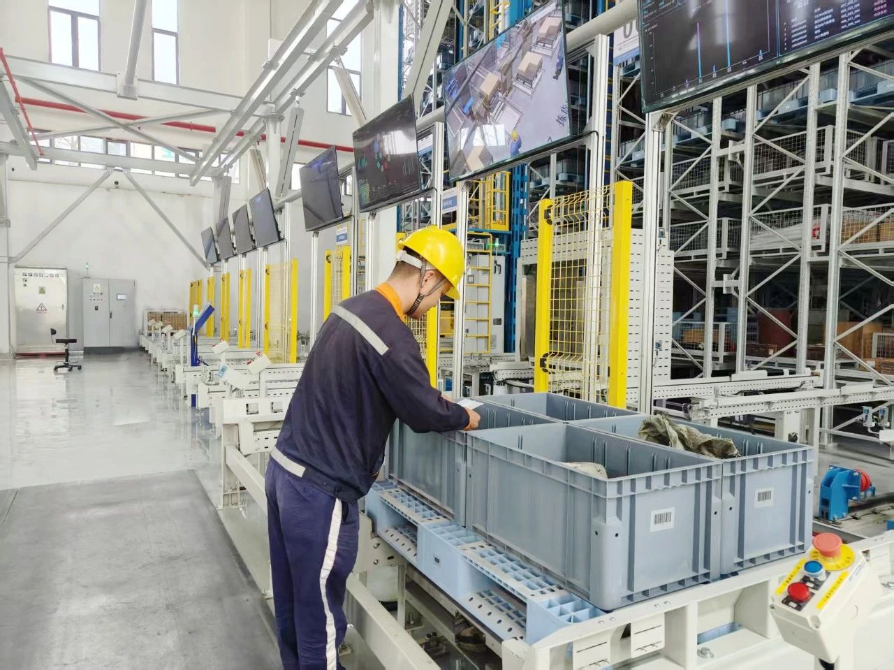 ▲供应销售部智能仓储中心仓库保管员在出库拣货