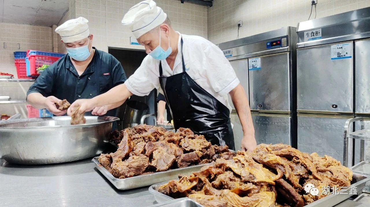 ▲后勤服务部精心为职工准备菜肴,让职工感受家的温暖