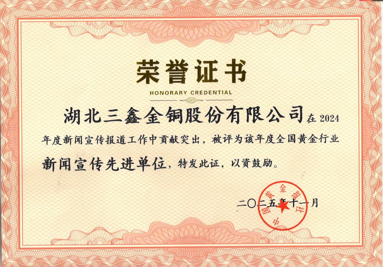 近日,2025年全国黄金行业党建工作会议暨新闻宣传工作会议在福建上杭举行,会议表彰了中国黄金行业2024年度新闻奖,新闻宣传工作先进单位、先进工作者。湖北三鑫公司荣获2024年度全国黄金行业新闻宣传先进单位;4人荣获2024年度全国黄金行业新闻宣传先进工作者;新闻摄影作品《奋进的春天丨好一幅三鑫高质量发展“热乎”景象》荣获新闻二等奖,充分展现了公司良好形象,营造了良好氛围。