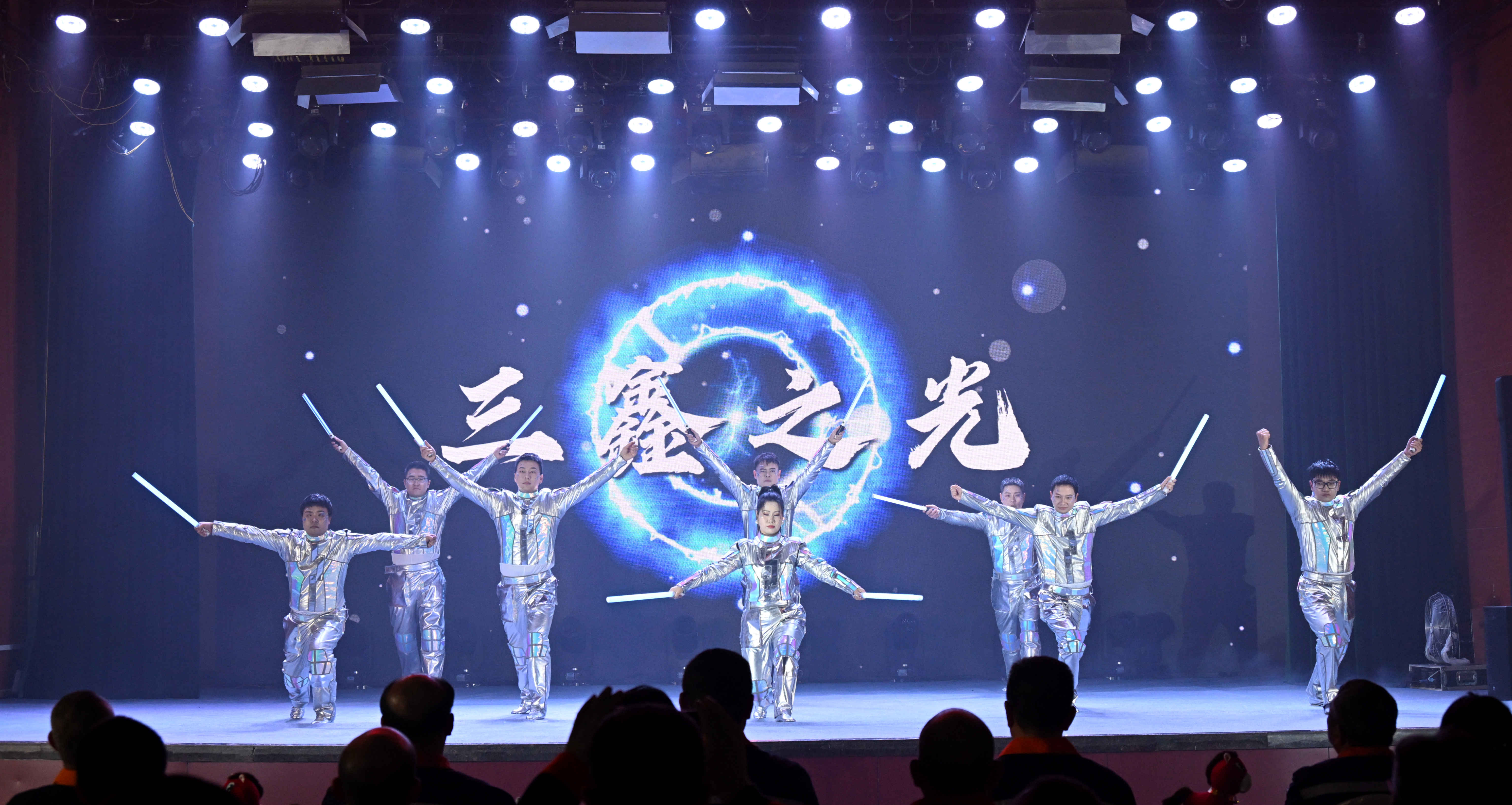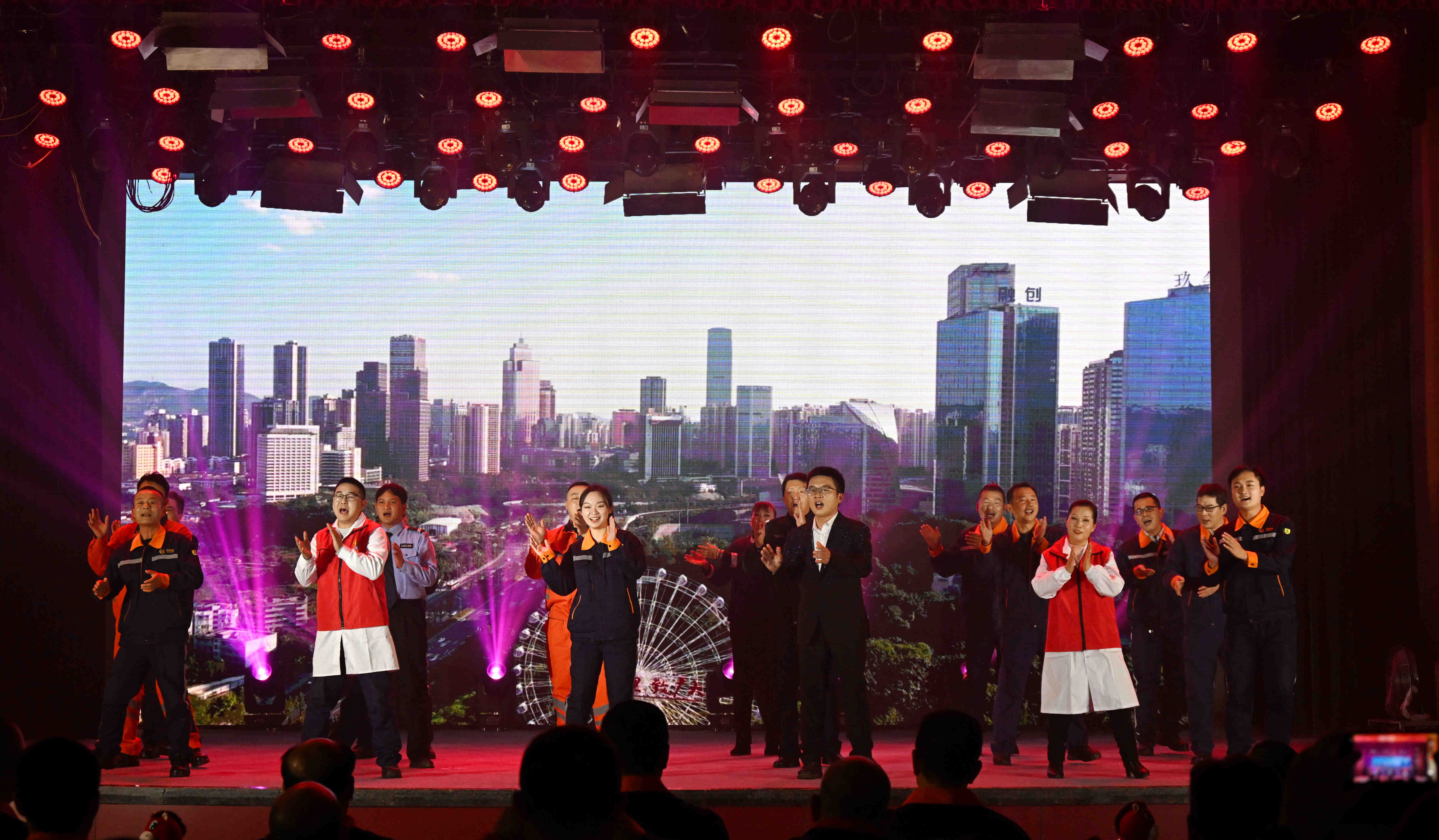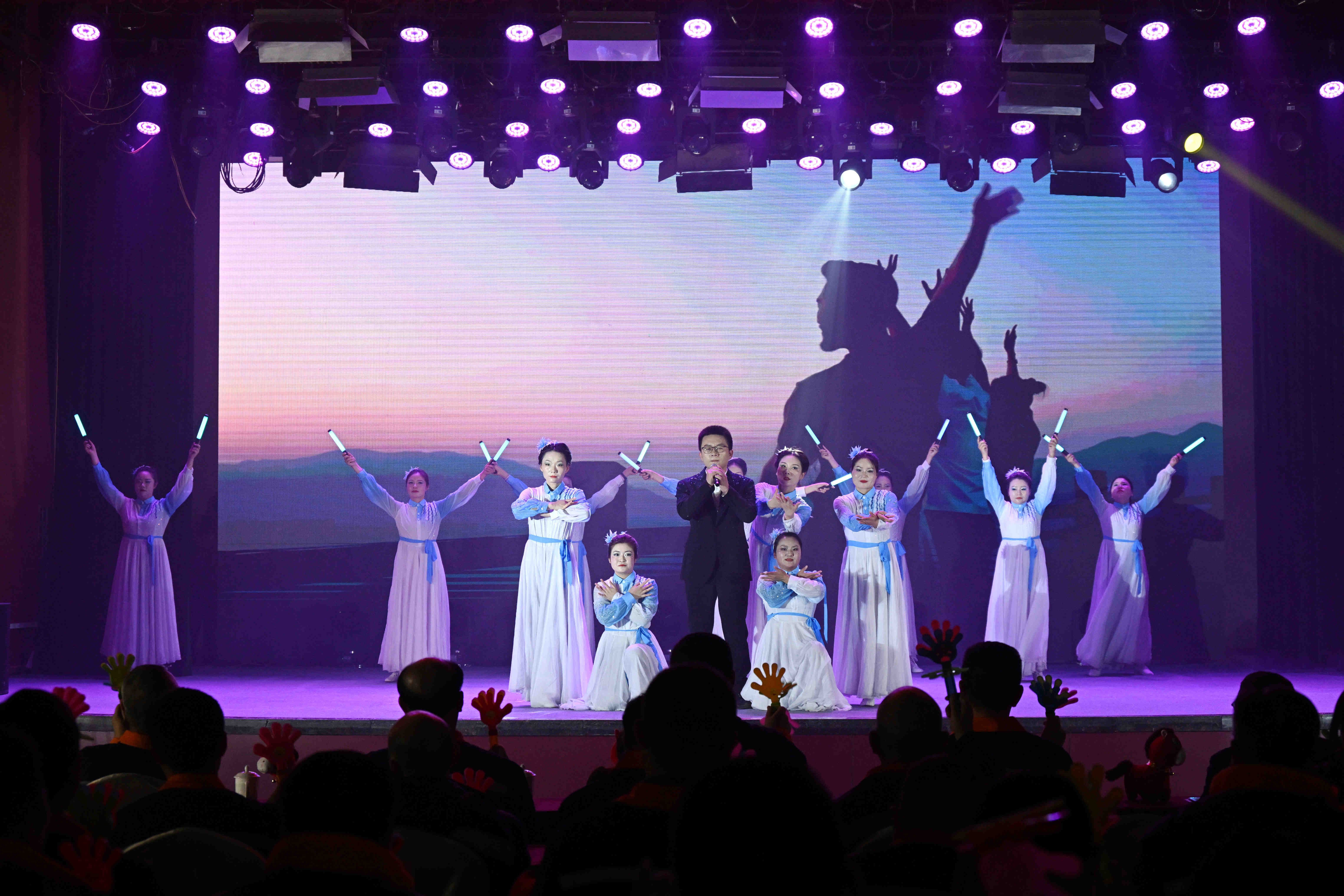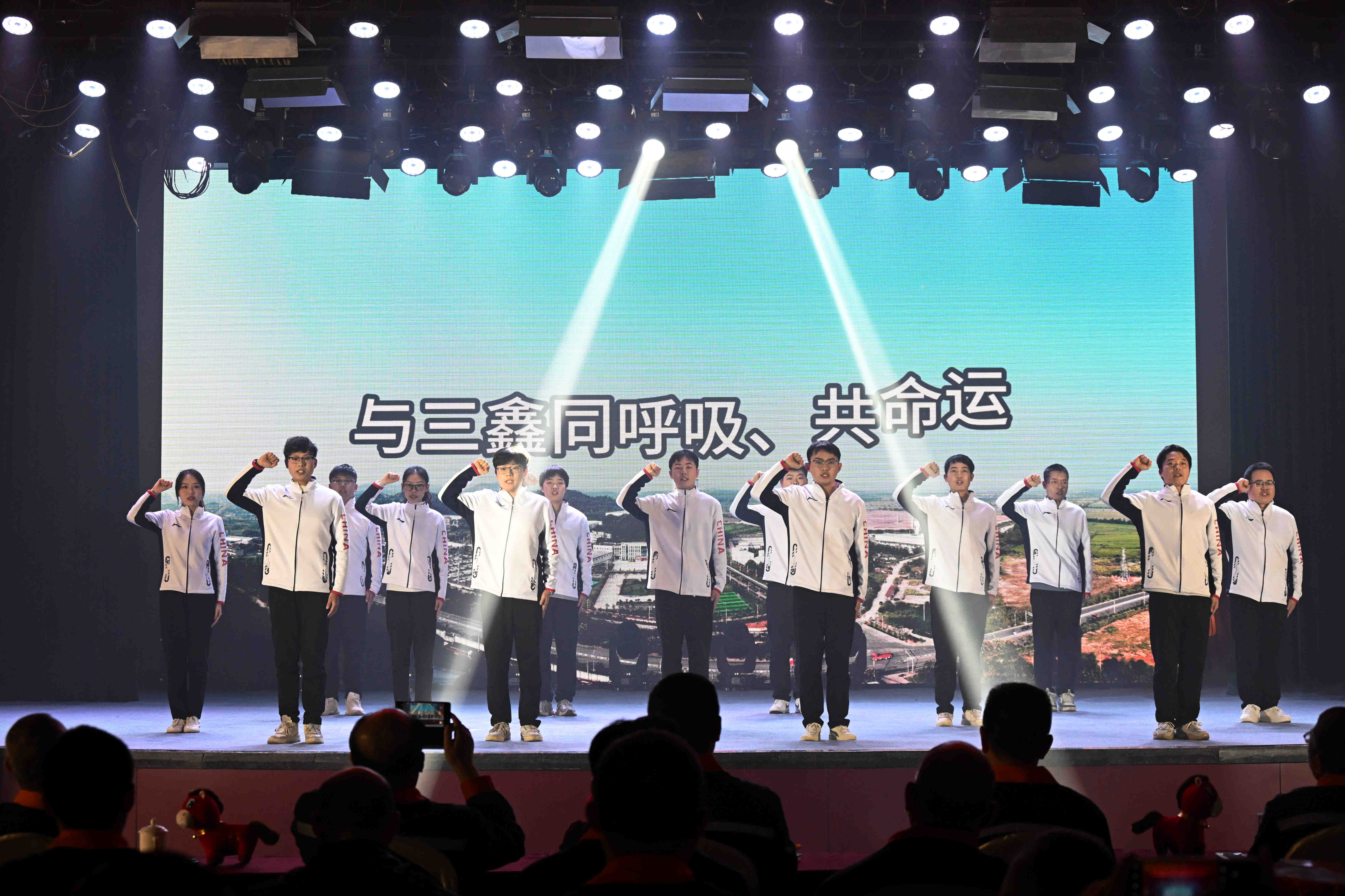 在“万家灯火庆丰年”篇章,才艺互动《万马奔腾》集书法、古琴、舞蹈于一体,翰墨飘香、琴韵悠扬,传递出对公司的美好祝福;歌伴舞《无名的人》深情讴歌了默默奉献的矿山建设者;小品《合规》以幽默诙谐的方式,生动演绎了合规管理的重要性,寓教于乐;歌曲《致平凡》唱响了向每一位平凡奋斗者致敬的心声。演出最后,公司领导班子成员、受表彰先进代表共同登台,高唱《团结就是力量》,雄壮的歌声将现场气氛推向最高潮,彰显了三鑫人上下同心、众志成城的磅礴力量。