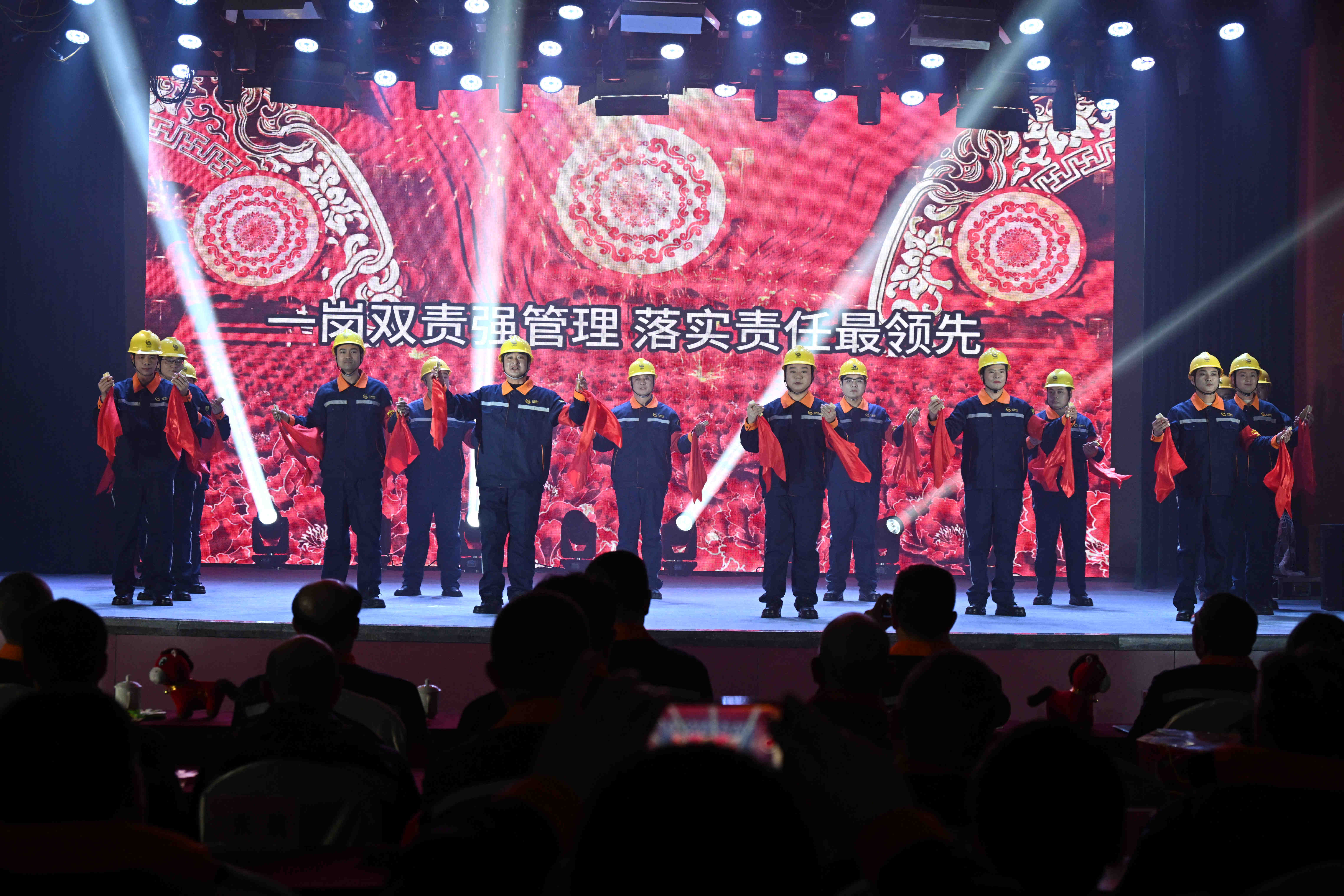 “绿色矿山践初心”篇章通过访谈短片《矿山荣光·初心答卷》,将镜头对准奋战在公司各条战线的平凡英雄——精益求精的化验“巾帼天团”、勇于创新的技术团队、扎根现场的QC小组,讲述了他们以匠心守护初心、用奋斗创造价值的感人故事。情景剧《我宣誓》、国风舞《繁华似锦》、音乐快板《人人都是安全员》、舞蹈《金色脊梁》等节目,呈现了三鑫人忠诚履职、坚守安全、甘于奉献、勇担使命的生动群像。