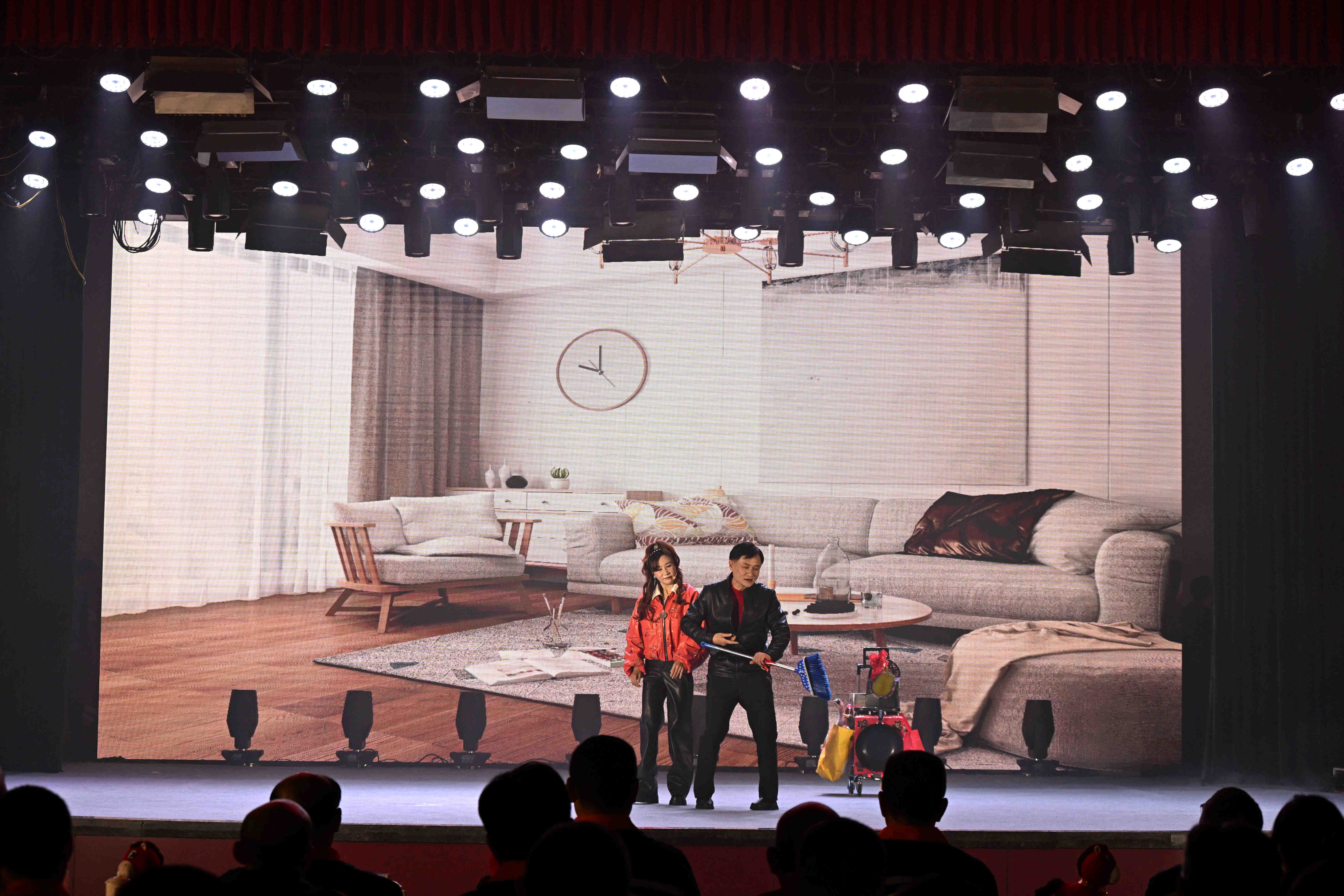 汇演在气势恢弘的开场舞《金马踏歌盛世华章》中拉开序幕,瞬间点燃现场热烈氛围。演出分为“扬鞭奋蹄启新程”“绿色矿山践初心”“万家灯火庆丰年”三个篇章,融合歌舞、情景剧、音乐快板、小品、才艺展示等多种形式,生动展现了公司2025年取得的辉煌成就与干部职工昂扬向上的精神风貌。紧随其后的灯光秀《三鑫之光》以绚丽光影艺术,展现了矿山发展的壮丽图景与三鑫人的坚定初心。