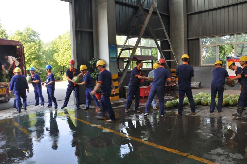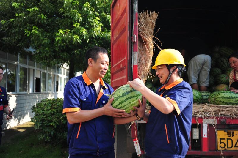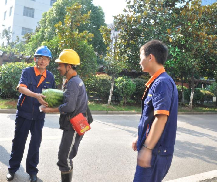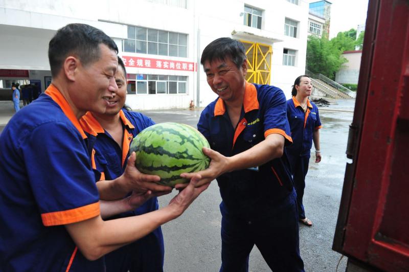 公司副总经理郑杰为提升车间发西瓜。